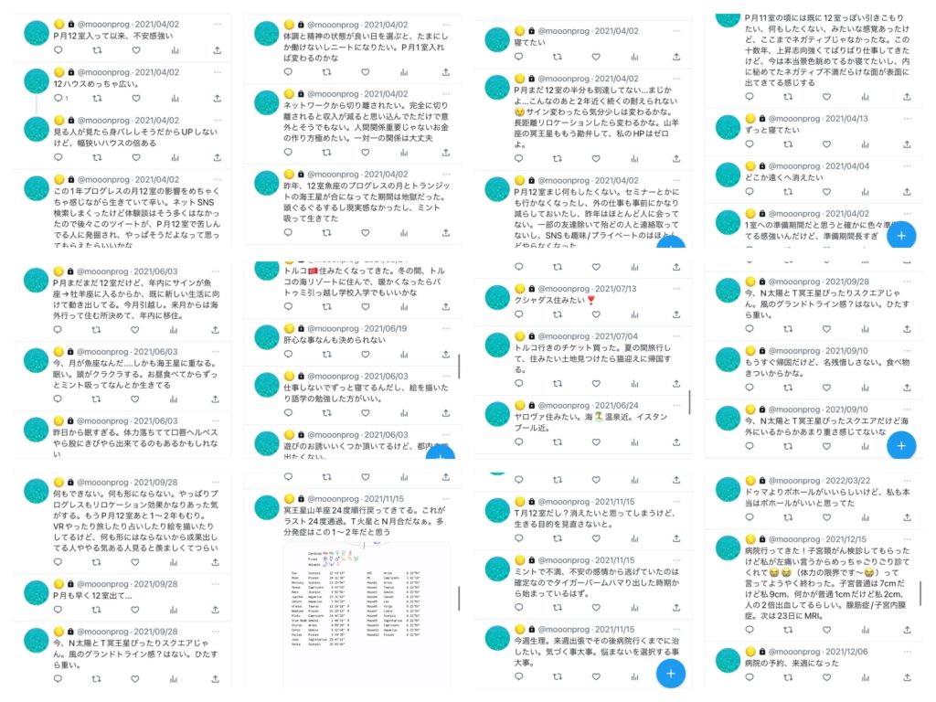 このページはつい最近まで「P月 12ハウス」を検索しまくっていたプログレスの月(以下P月)12室の私の記録です。